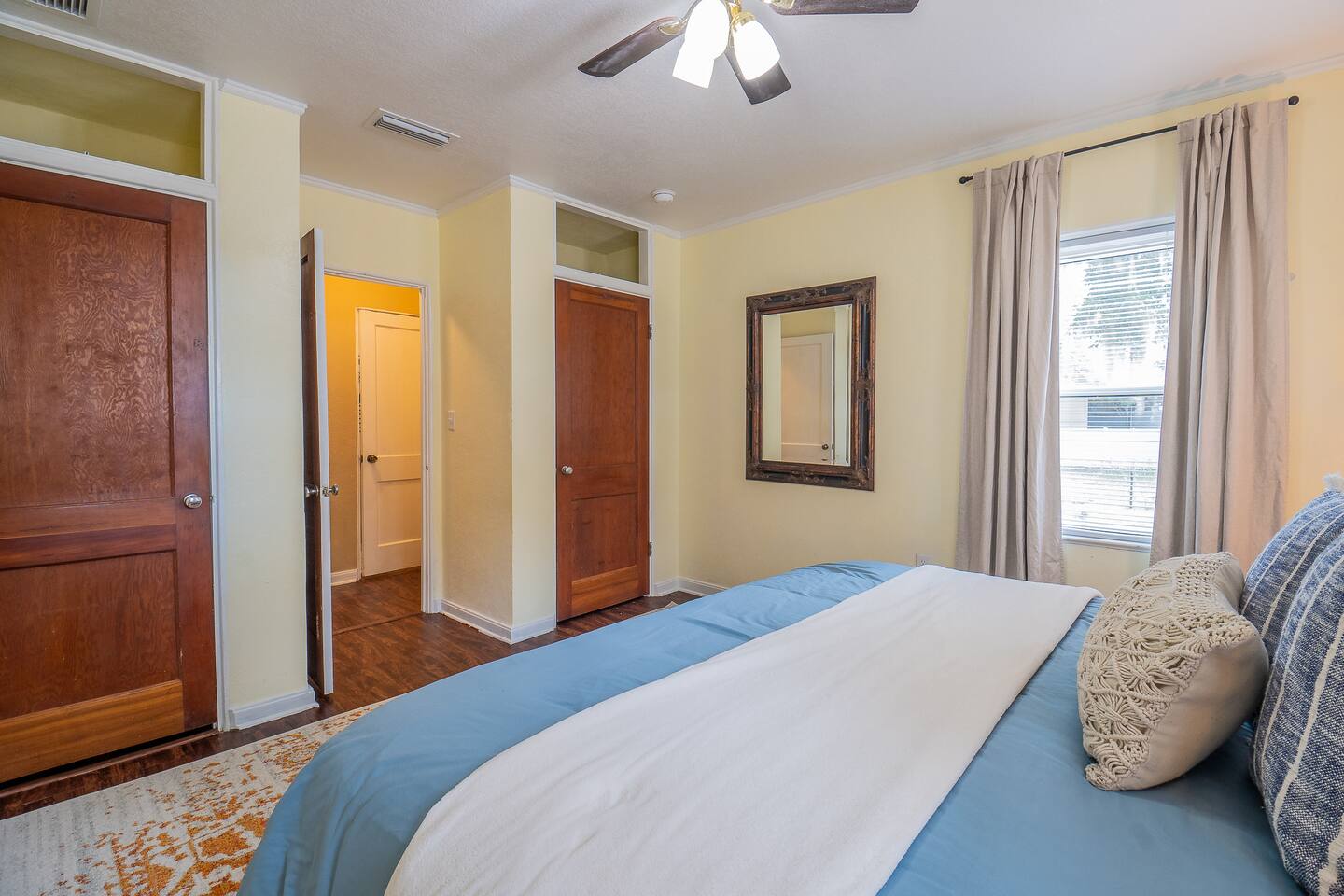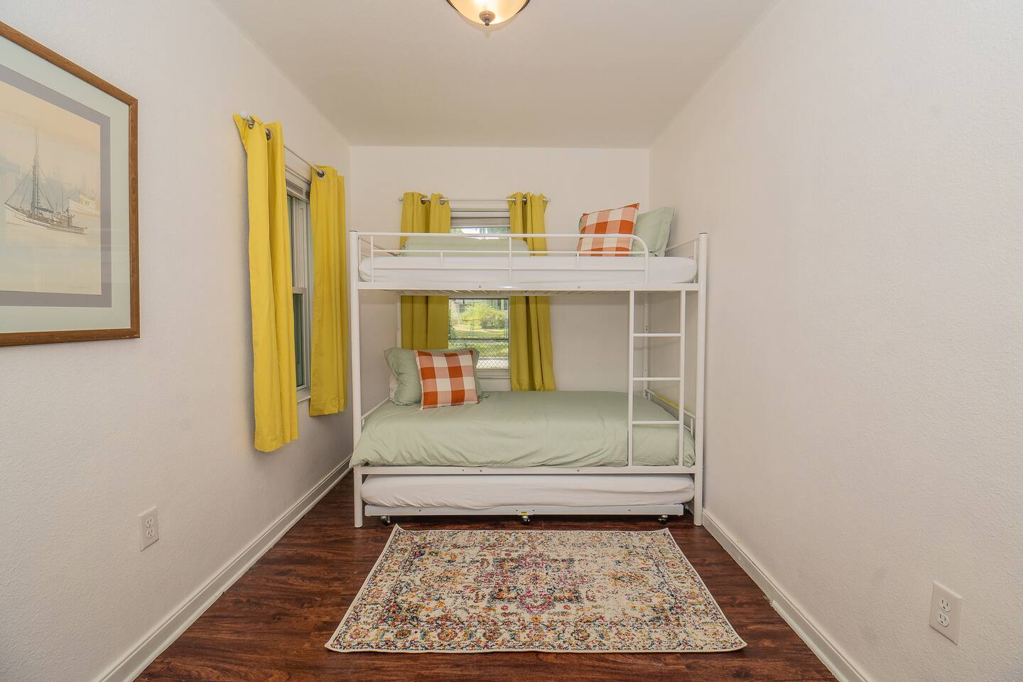 This charming 2-bedroom vacation rental is perfect for an affordable family getaway. One bedroom features a luxurious king bed, while the second bedroom offers fun twin bunk beds with a convenient twin trundle. The cozy living room includes a queen-size sleeper sofa with a comfortable memory foam mattress. Accommodating up to 7 guests, this rental is an ideal blend of comfort and practicality for your family's next vacation. Just minutes away from Bartow's adorable Downtown.