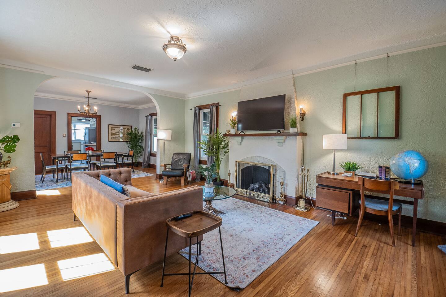 √ Bedroom One: The centerpiece of the modern themed bedroom is a queen sized bed with a comfy mattress and linens that promise a restful night's sleep. It has a closet & storage space for extended stays. Gorgeous natural sunlight. √ Bedroom Two: This stylish bedroom comes with a queen sized bed with a comfy mattress and linens. It has a closet & storage space for extended stays. Gorgeous natural sunlight. √ Guest Full Bathroom: Cute Bathroom with a tub/shower combo. Shampoo, conditioner, body wash and a hair dryer available for use. Plenty of towels available. √ Living Room: Curl up on the couched and enjoy your favorite show or movie on the smart TV. This living room comfortably seats 4 people. √ Kitchen: The kitchen is equipped with everything you need to prepare a meal. Whether you're whipping up a meal from scratch or reheating leftovers, you'll find all the tools you need. For coffee drinkers, you’ll find a drip coffee maker with coffee, creamer, and sugar as well as tea options. √ Dining: The dining room table has seating for 6. The breakfast nook in the kitchen seats 4. √ Extras: - Walking distance to a beautiful walking path and public golf course. Gorgeous playground minutes away. - Multiple outdoor seating areas - Washer and dryer (supplies included) - Pet friendly with paid pet fee!