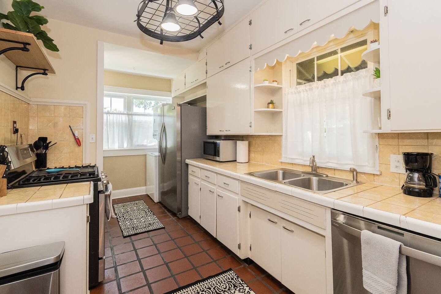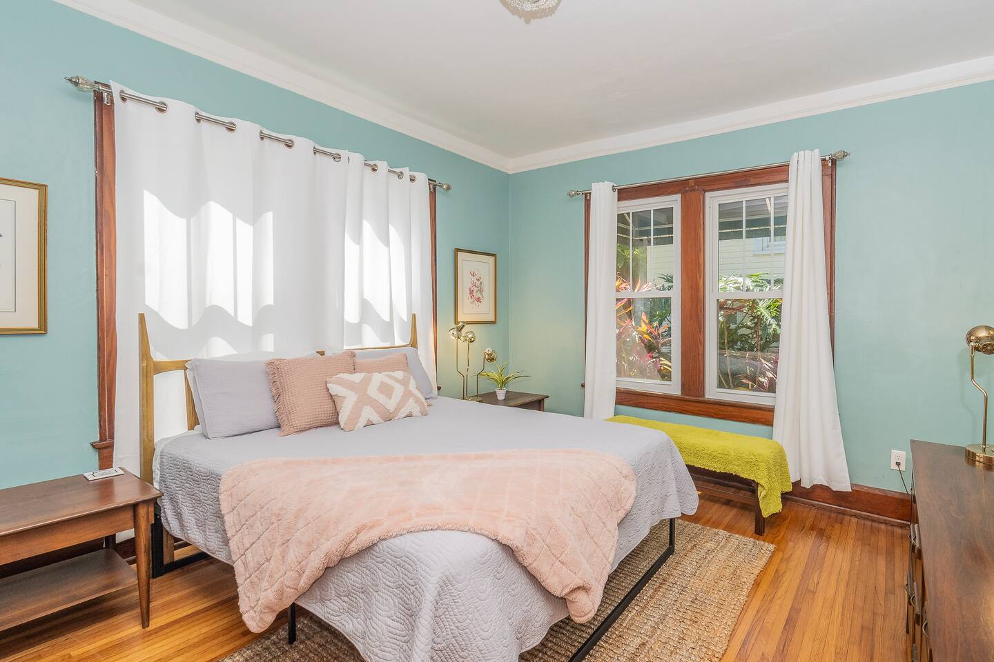 While you'll have access to almost the entirety of our delightful space, we do have a locked closet for supplies for the property. The back guest house is not accessible to the main house. They have their own entrance and parking space.