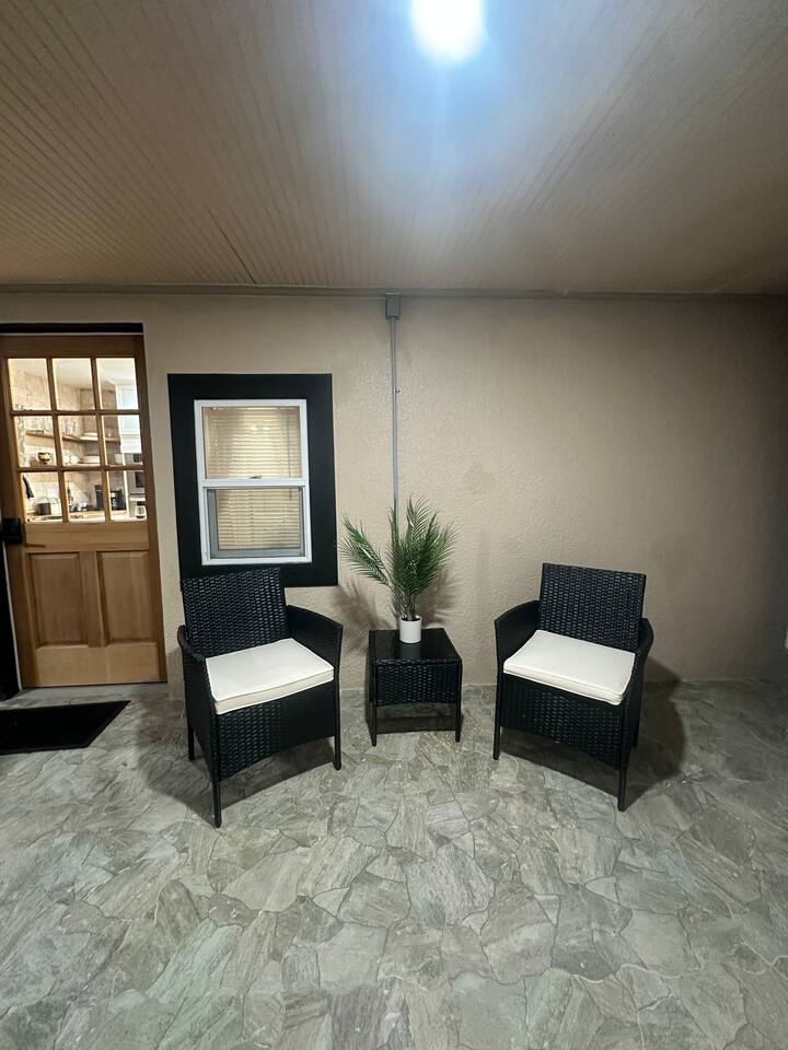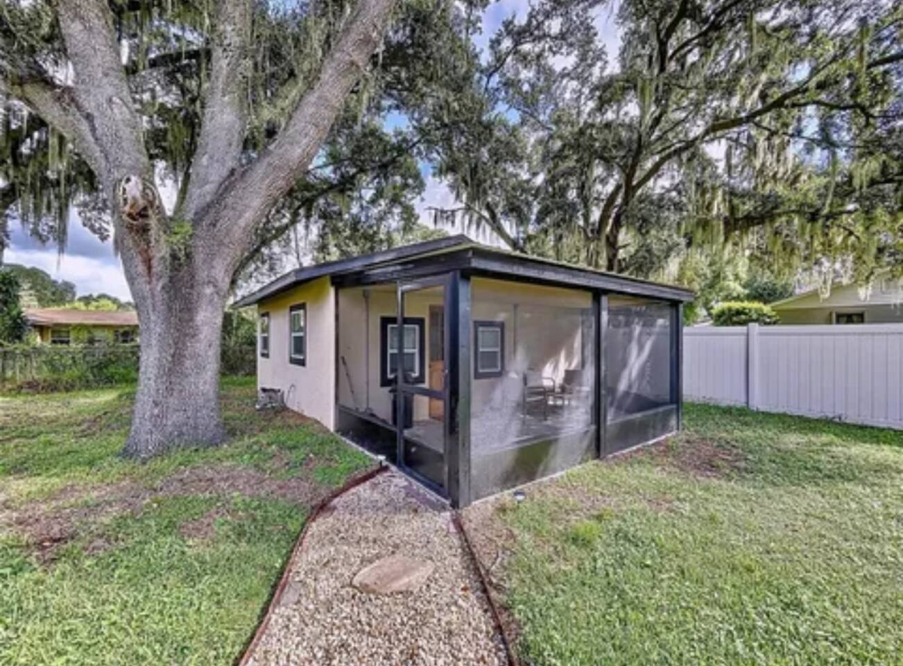 √ Location: Located Close to the Polk Parkway, for easy access for travel to Legoland, Disney, Universal, & Beaches! 9.7 Miles to Legoland / Peppa Pig Theme Park 5.5 Miles to Downtown Winter Haven 45 Miles to Tampa 49 Miles to Disney World 51 Miles to Universal Studios 108 Miles to Cocoa Beach / Space Coast √ Bedroom - The centerpiece of the modern themed bedroom is a cozy, queen sized bed with a comfy mattress and linens that promise a restful night's sleep. It has a wardrobe for storing clothes, lack-out curtains, which make it great for sleeping in. Small Smart TV. √ Bathroom - Huge resort style walk in shower and large soaking tub. Marble tile walls. Oversized bathroom vanity with light up mirror. The washer and dryer are in the bathroom behind the barn doors. √ Living Room: Small apartment sized living room furniture. Retro two seater sofa and two chairs. Smart TV. √ Kitchen: The kitchen is a culinary haven, equipped with everything you need to unleash your inner chef. Whether you're whipping up a meal from scratch or reheating leftovers, you'll find all the tools you need. The Refrigerator is not a mini fridge but the next size up Apartment sized refrigerator. For coffee enthusiasts, you’ll find a Coffee Bar! Keurig and Drip Coffee maker, with a variety of coffees, cream, sugar, and syrup. √ Extras: - Screened in Patio with seating for 2 - Bar Island Seating for 2 - Fenced in Back Yard - Washer and dryer (Starter supplies included)