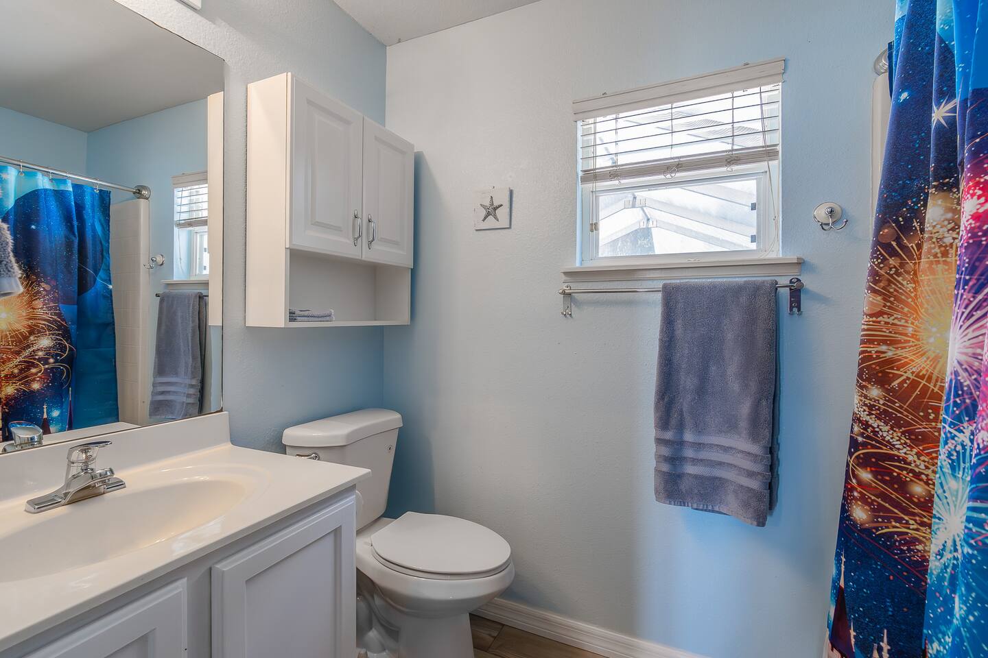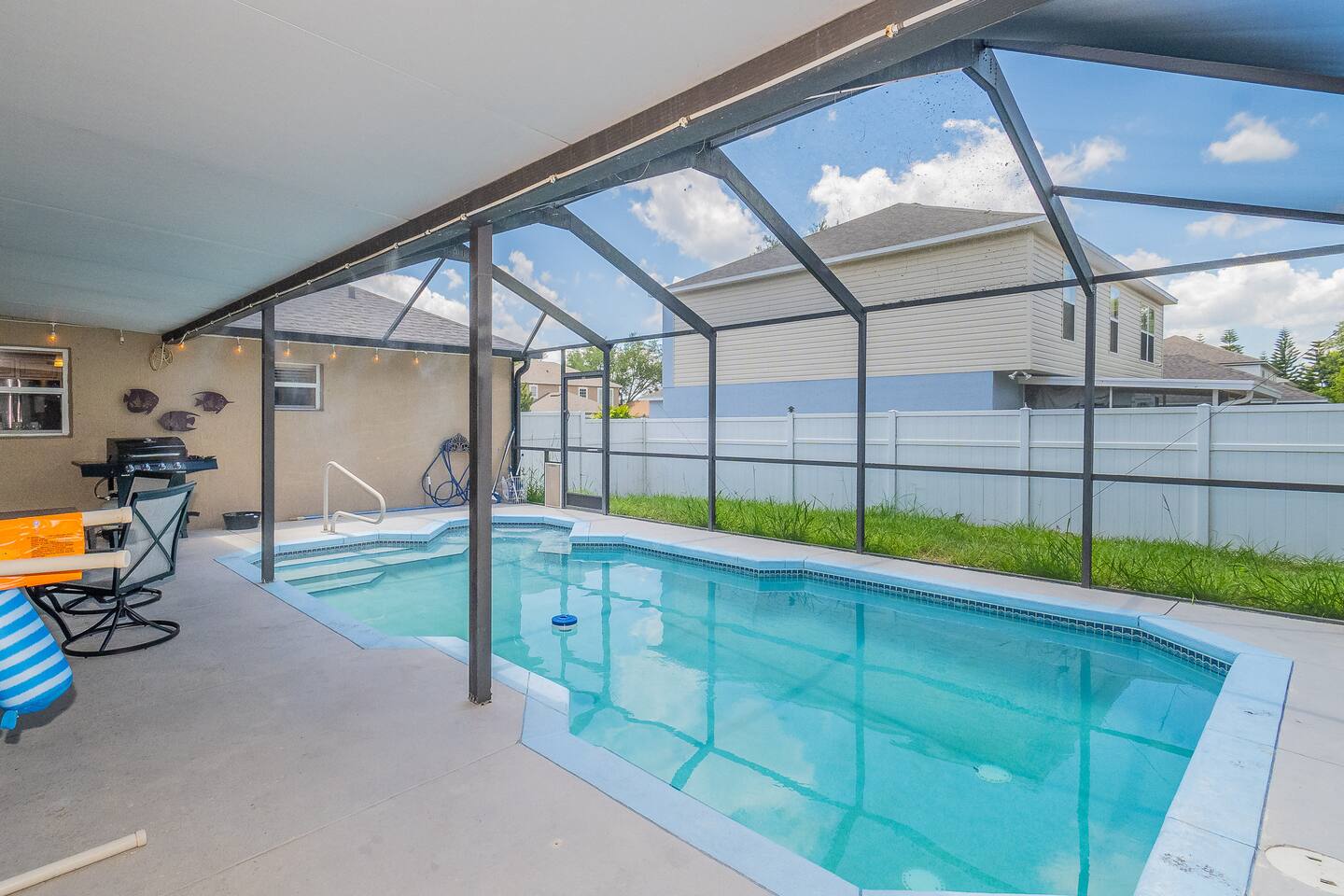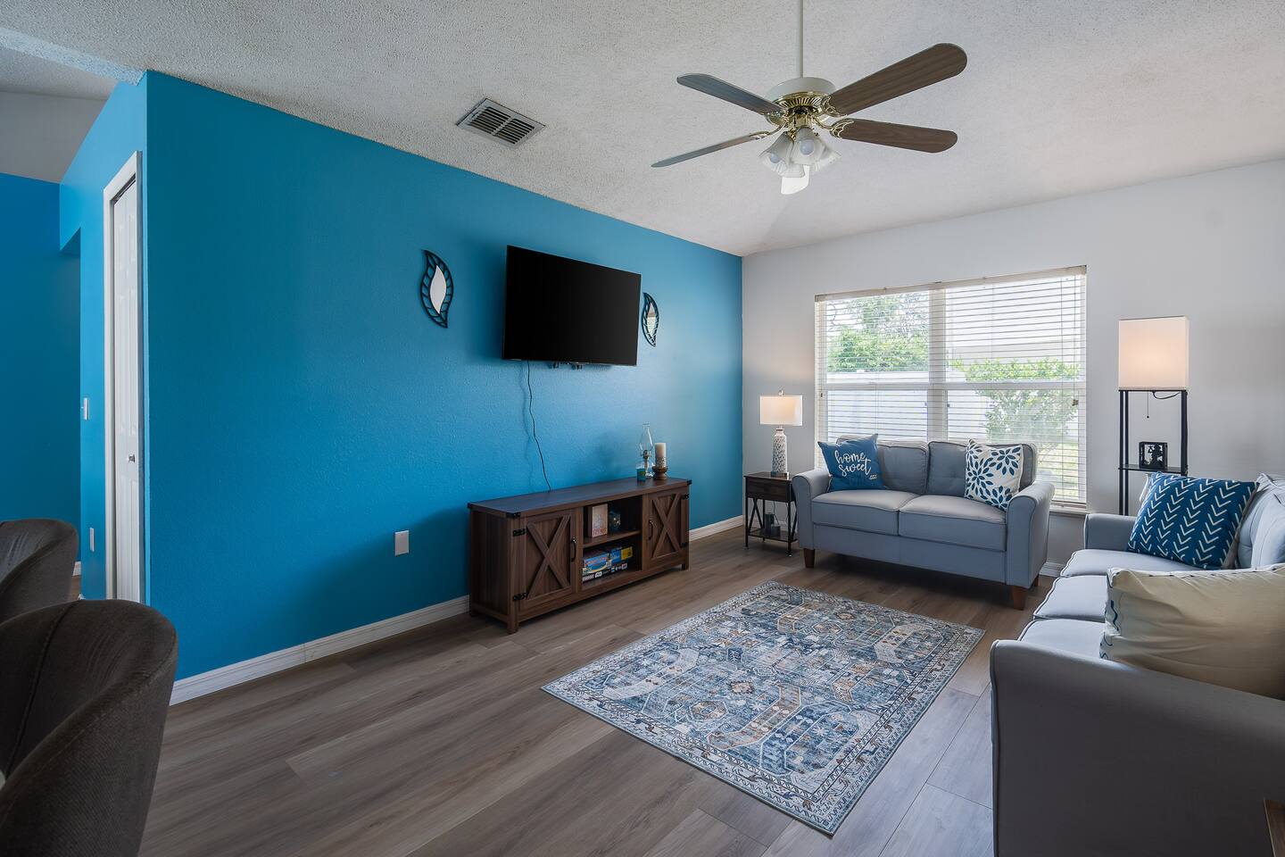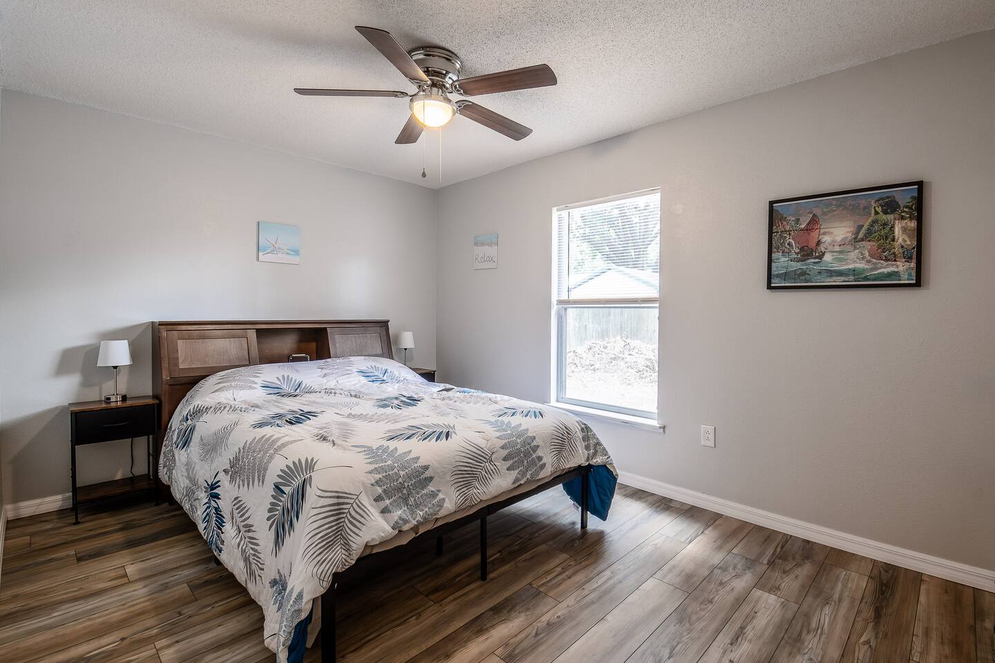 √ Bedroom One - The centerpiece of the modern themed bedroom is a lavish, king sized bed with a comfy mattress and linens that promise a restful night's sleep. It has a large closet, plenty of storage space for extended stays. It has black-out curtains, which make it great for sleeping in. Smart TV √ Ensuite Master Full Bathroom - Located in the Main Bedroom. Shower / Tub Combo. Shampoo, conditioner, body wash and a hair dryer available for use. Plenty of towels available. √ Bedroom Two - This stylish bedroom comes with a queen sized bed with a comfy mattress and linens. It has a large closet and storage space for extended stays. √ Bedroom Three - The Mickey and Minnie room has twin size bunk beds! √ Bedroom Four - The Lilo and Stitch room has two separate twin beds. √ Full Guest Bathroom: Cute Bathroom with a tub/shower combo. Shampoo, conditioner, body wash and a hair dryer available for use. Plenty of towels available. √ Living Room: Curl up on the couch and enjoy your favorite show or movie on the screen smart TV. This living room comfortably seats 4 people. √ Family Room: Don't want to watch the same movie? The front family room has a futon couch and a Smart TV! √ Kitchen: The kitchen is a culinary haven, equipped with everything you need to unleash your inner chef. Whether you're whipping up a meal from scratch or reheating leftovers, you'll find all the tools you need. For coffee enthusiasts, you’ll find a coffee machine with a variety of coffees, and creamers. √ Dining Space: We have a picnic style table that can seat 4-6 with two additional seats at the island bar. √ Pool and Patio: Screened in patio and pool area for the hot summer days! The pool is not heated, but warms up very quickly in the summer time. The patio has a built in misting system you can turn on to cool down even if you are not going for a swim. The outdoor patio table sits 4 people. Propane grill available for use as well. √ Extras: - Boat ramp for Lake Sears at the front of our community! Bring your water toys! - Driveway can fit 2-3 vehicles, street parking is available just don't block other driveways. - Washer and Dryer (supplies included)