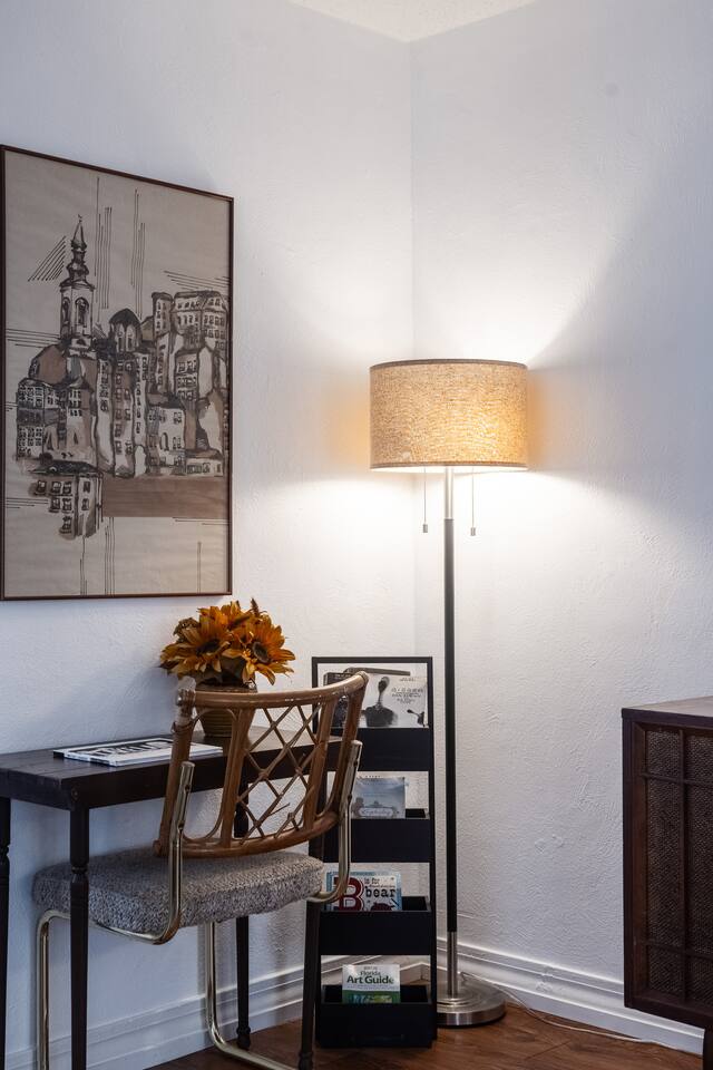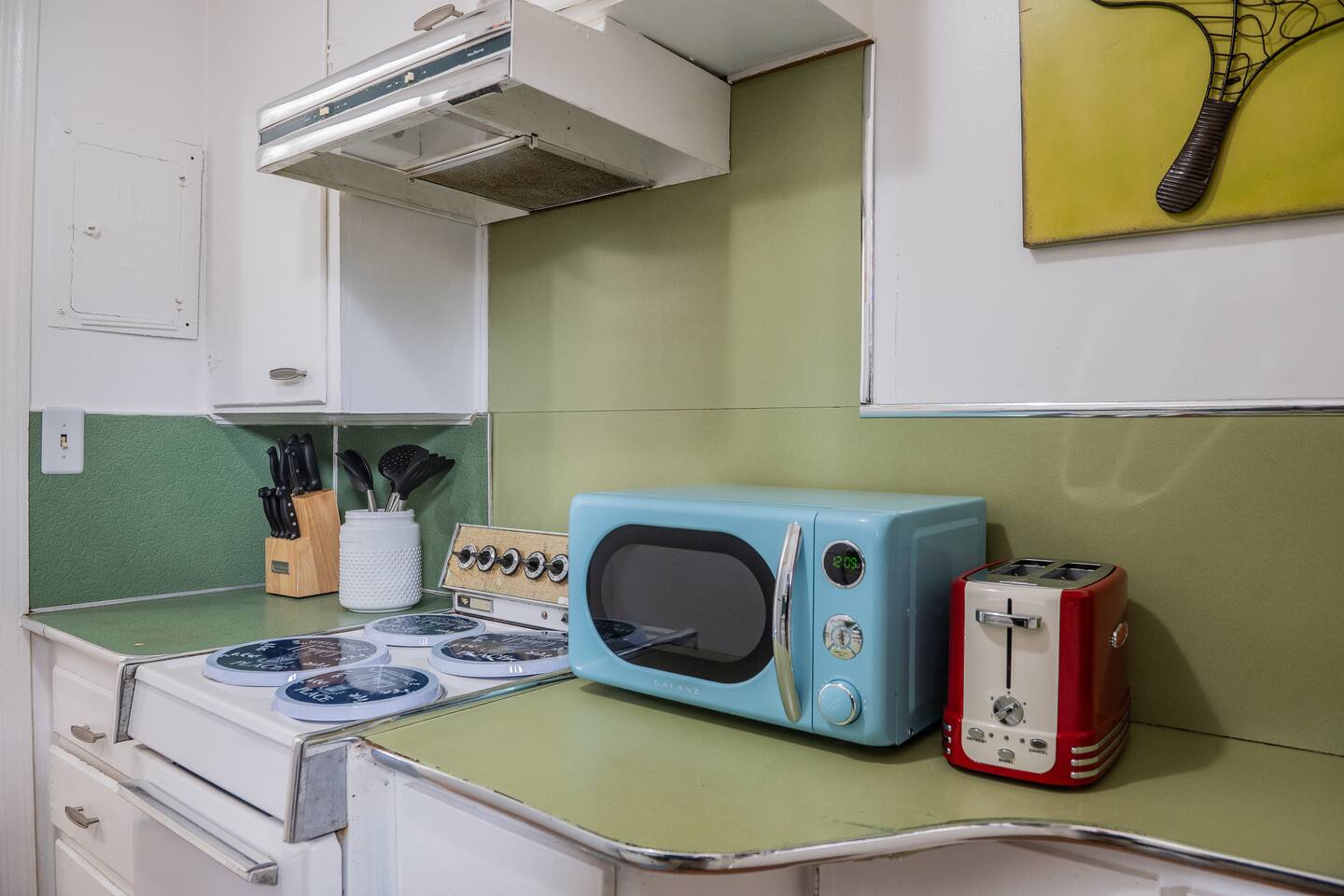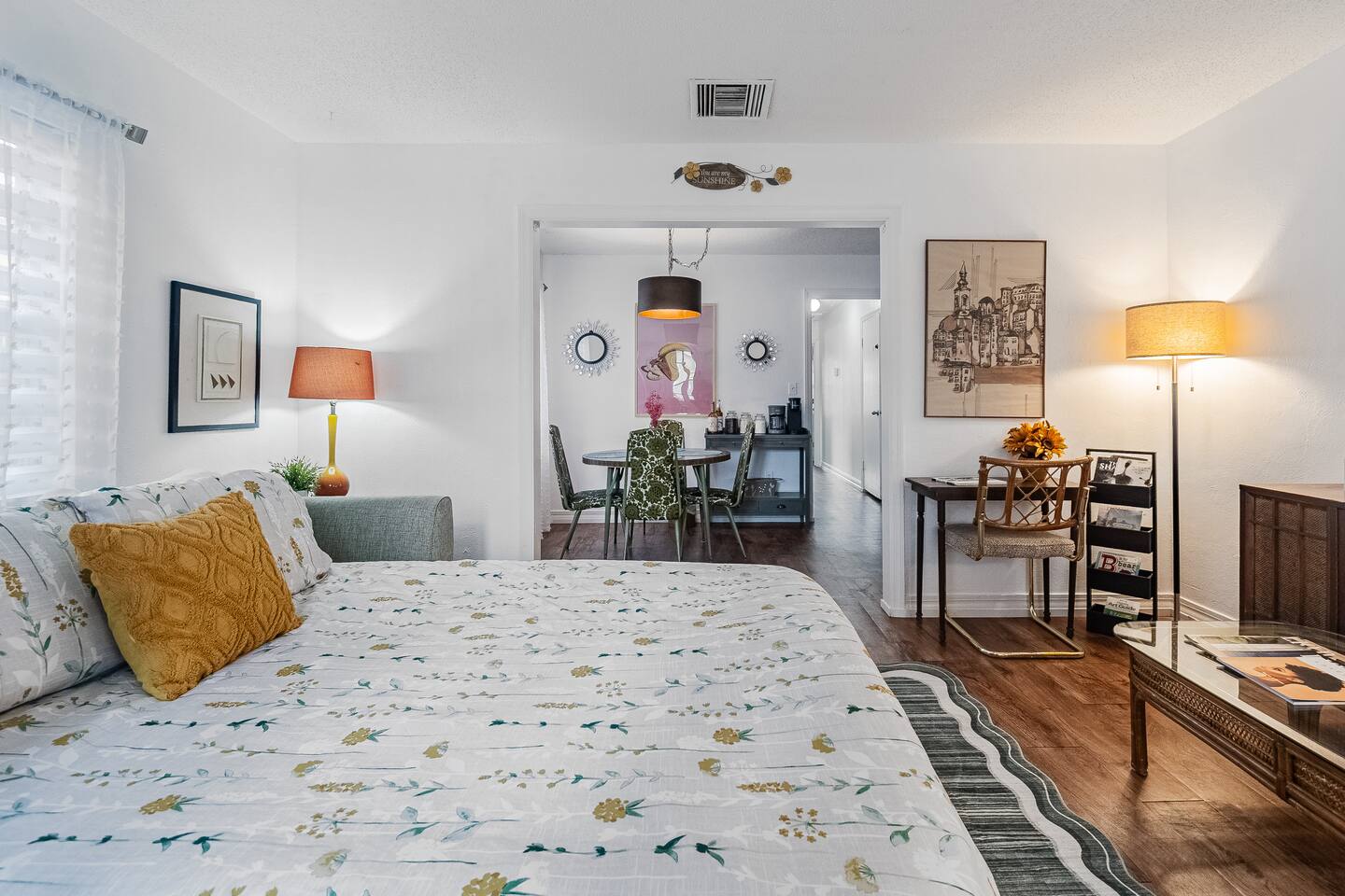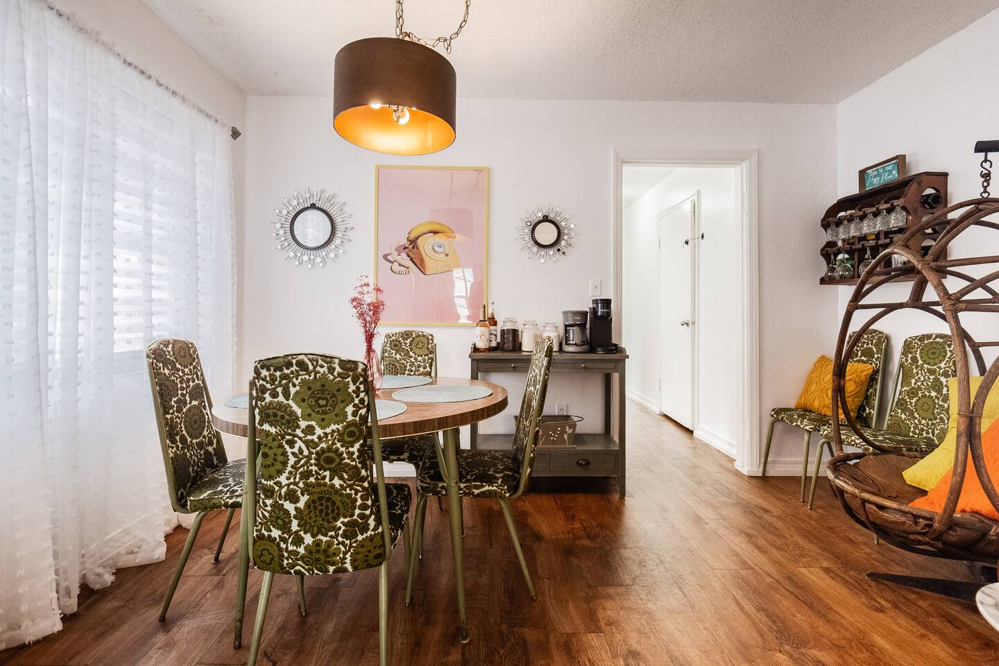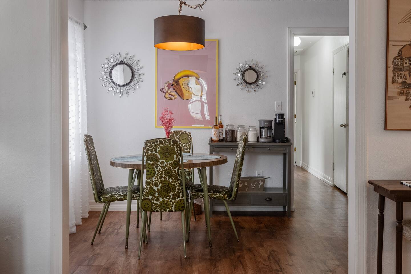 Step back in time at this 70’s-style retro retreat in Downtown Lakeland! Perfectly located and within walking distance of Florida Southern College and Lake Morton, and just minutes from Lake Hollingsworth and our vibrant Downtown. This one-bedroom gem features a queen bed, one bath, a cozy living room with a queen sleeper sofa, a fully stocked small kitchen, and a charming coffee bar. Enjoy a stylish and comfortable stay in the heart of it all!