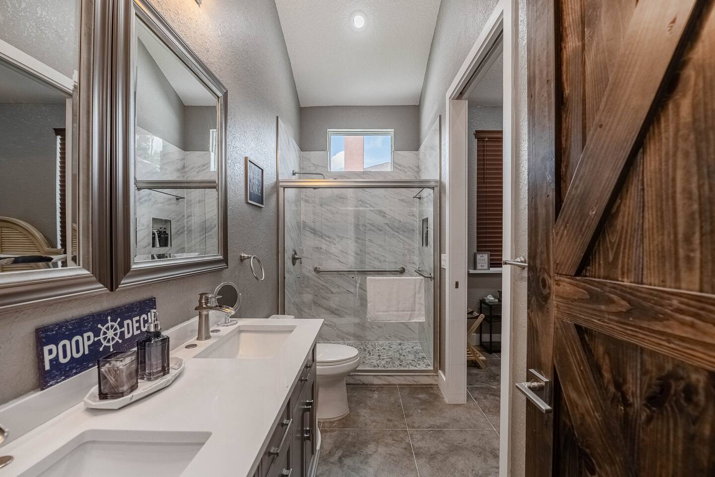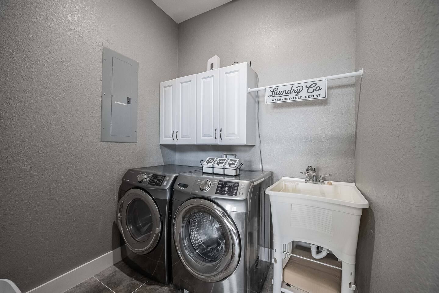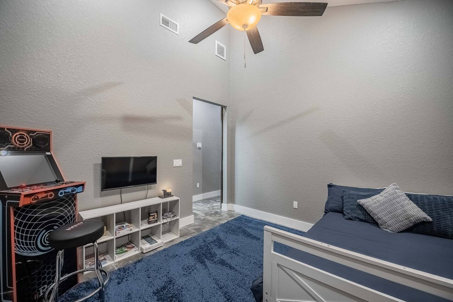 √ Location: Located on Eagle Lake!! (On the other side of the street) 7.3 Miles to Legoland / Peppa Pig Theme Park / Sea Life Aquarium 4.1 Miles to Downtown Winter Haven 46 Miles to Disney 44 Miles to Universal Studios 40 Miles to Busch Gardens 49 Miles to the Florida Aquarium 73 Miles to Clearwater Beach 84 Miles to Cocoa Beach 96 Miles to Cape Canaveral 93 Miles to Vero Beach √ Bedroom One - The centerpiece of the lake house themed bedroom is a lavish, king sized bed with a comfy mattress and linens that promise a restful night's sleep. It has a very large walk in closet, plenty of storage space for extended stays. Pack N play with sheets provided for you little ones. Workspace for remote workers, home schoolers, or for your enjoyment is provided There is also a Smart TV. This room has an additional and optional window AC unit to keep it extra cool in this space. √ Bedroom One Ensuite Bathroom - Large walk in shower with glass walls. There is an accessibility friendly stool in the shower. We provide towels, soap, shampoo, and conditioner as well as a hair blow dryer. √ Bedroom Two - This stylish bedroom also has an amazing king sized bed! Luggage rack for your traveling suitcase. There is a Smart TV in this room as well. There is access from this room for the guest bathroom. √ Bedroom Three: This room has a double/full size bed as well as a Twin trundle. We provide plenty of pillows and blankets. This space also has a Smart TV. This adorable "kids room" is also perfect for adults. Take a turn on the arcade game or crack open a board game with the whole family! √ Living Room: Curl up on the large leather reclining sofas and enjoy the big screen Smart TV for a family movie night. Great for a rainy day. This living room comfortably seats everyone staying. √ Kitchen: The kitchen is a culinary haven, equipped with everything you need to unleash your inner chef. Whether you're whipping up a meal from scratch or reheating leftovers, you'll find all the tools you need. For coffee enthusiasts, you’ll find a Keurig with a variety of coffees, cream, & sugar. √ Extras: - Backyard Patio with a Hammock and a Grill - Large Size yard Games - Kitchen Bar Seating for 4 - Additional Bar style Dining that seats 6 - Fenced in Back Yard - Washer and dryer (supplies included)