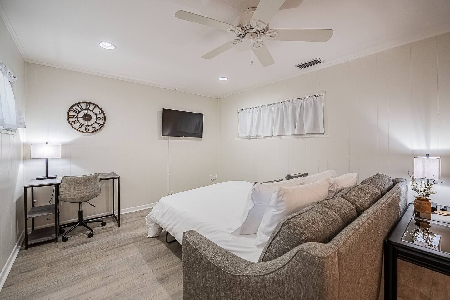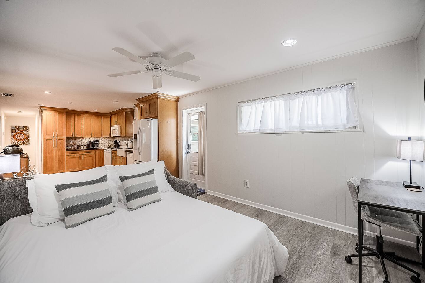 While you'll have access to almost the entirety of our delightful space, we do have two locked closets. √ Guest access: Keyless entry and self check in on your own time, which makes it super convenient to access at any time. √ Early check-in/late check-out: We'll do our best to grant special requests, but we can’t guarantee that we’ll be able to make every request happen. Contact your host to see if we can help accommodate any special request. √ Discounts: Want to extend your stay? We offer discounts for stays one week or longer. √ Pet Policy: Furry friends, we love you, but we cant have you here. $200 fine √ Laundry: Traveling light or staying a while? We have a set of washers and dryers, and we provide laundry soap, too!