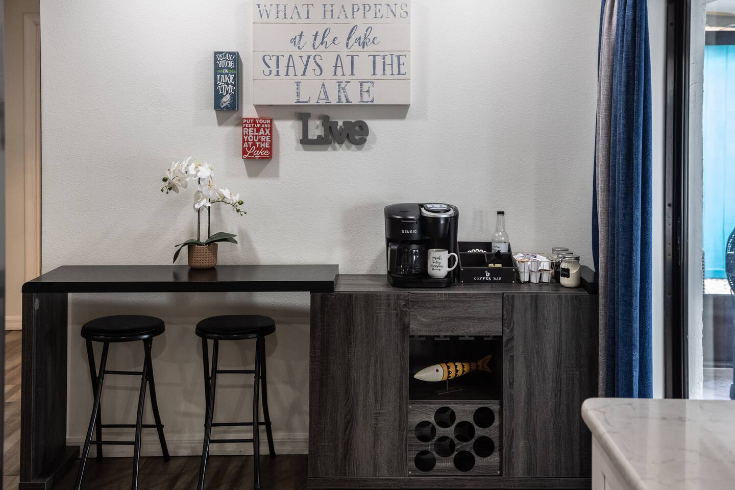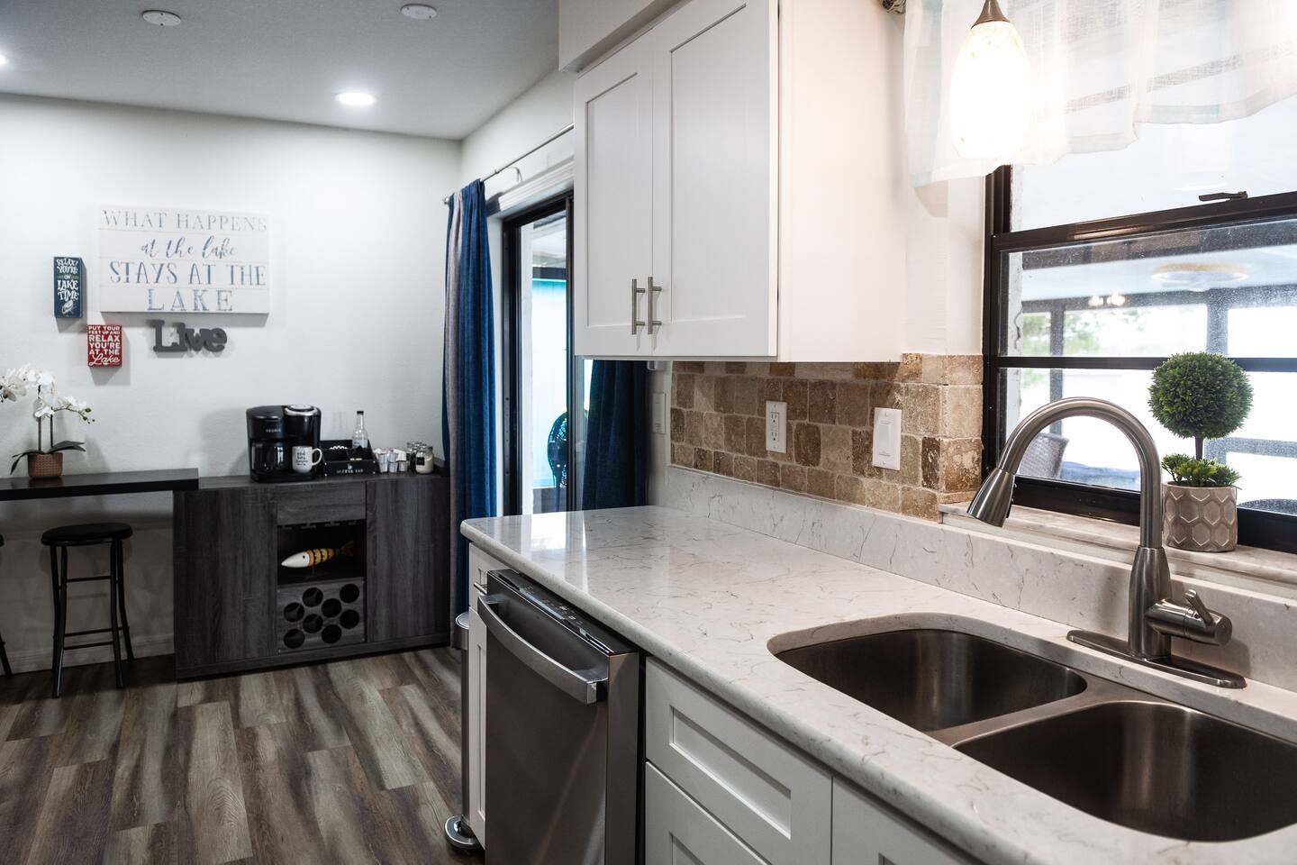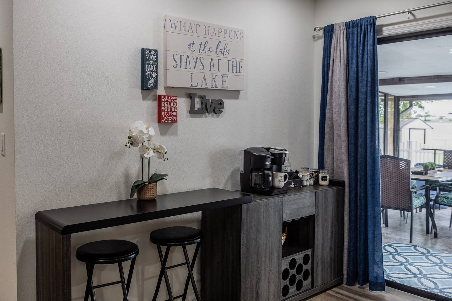 √ Master Bedroom + Ensuite Bathroom The centerpiece of the bedroom is a lavish queen size bed adorned with soft linens that promise a restful night's sleep. Smart TV and a large closet perfect for extended stays. √ Master Bathroom: Prepare to be pampered in the stunning bathroom featuring a spacious walk in shower & a large bathroom vanity √ Second Bedroom: One queen bed, comfy linens, lots of natural lighting. Smart TV! √ Third Bedroom: Two Twin Beds, comfy linens lots of natural lighting. Smart TV! √ Living Room: Relaxation takes center stage in the living room. Cozy space with trendy furnishings. Smart TV! √ Dining Space: Our Dining room seats 4 with additional outdoor dining that seat 6. √ Kitchen: The kitchen is a culinary haven, equipped with everything you need to unleash your inner chef. Whether you're whipping up a meal from scratch or reheating leftovers, you'll find all the tools you need. A Coffee bar for coffee lovers ready for your enjoyment. √ Patio and Fire Pit: Enjoy the outdoors in our screened in patio or gather around the fire for roasting s'mores and sharing stories. √ Hot Tub: Take a dip in our hot tub that comfortably seats 4 people √ Lake Views: Fish off of the dock, or sunbathe on the deck!