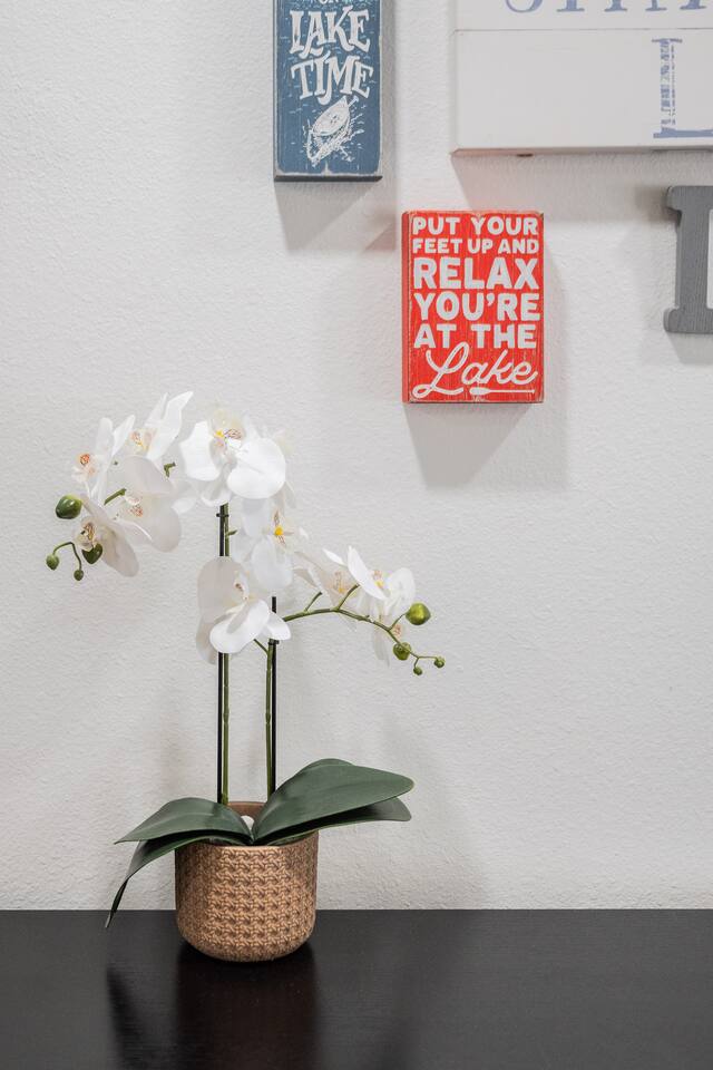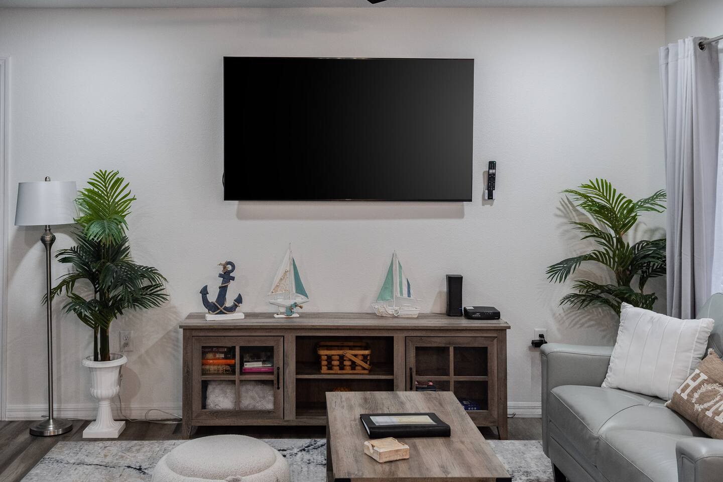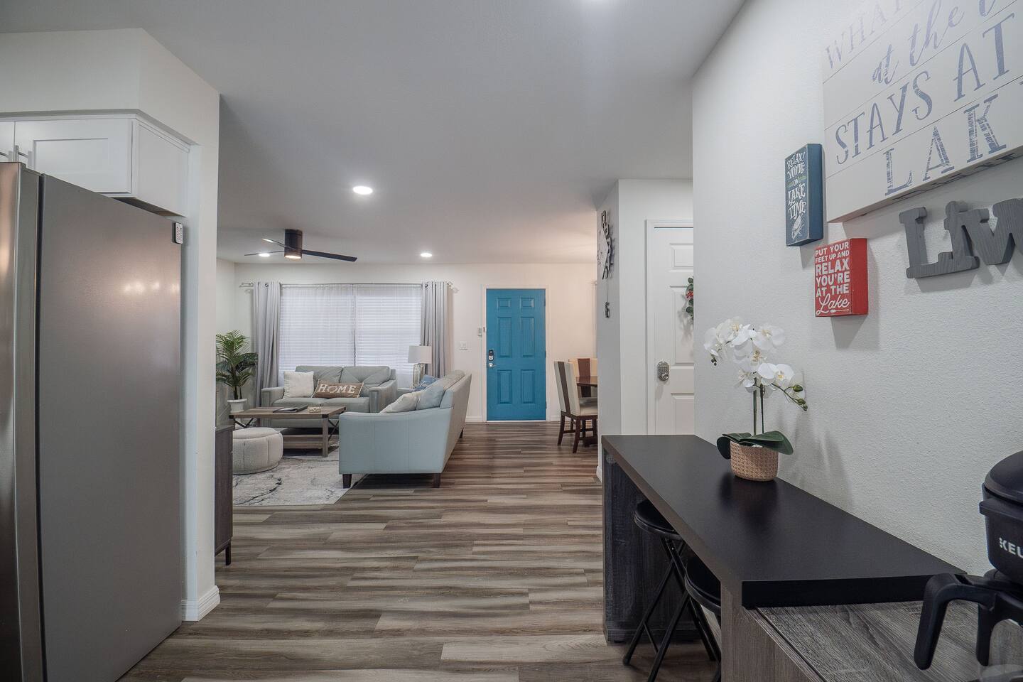 √ Master Bedroom + Ensuite Bathroom The centerpiece of the bedroom is a lavish queen size bed adorned with soft linens that promise a restful night's sleep. Smart TV and a large closet perfect for extended stays. √ Master Bathroom: Prepare to be pampered in the stunning bathroom featuring a spacious walk in shower & a large bathroom vanity √ Second Bedroom: One queen bed, comfy linens, lots of natural lighting. Smart TV! √ Third Bedroom: Two Twin Beds, comfy linens lots of natural lighting. Smart TV! √ Living Room: Relaxation takes center stage in the living room. Cozy space with trendy furnishings. Smart TV! √ Dining Space: Our Dining room seats 4 with additional outdoor dining that seat 6. √ Kitchen: The kitchen is a culinary haven, equipped with everything you need to unleash your inner chef. Whether you're whipping up a meal from scratch or reheating leftovers, you'll find all the tools you need. A Coffee bar for coffee lovers ready for your enjoyment. √ Patio and Fire Pit: Enjoy the outdoors in our screened in patio or gather around the fire for roasting s'mores and sharing stories. √ Hot Tub: Take a dip in our hot tub that comfortably seats 4 people √ Lake Views: Fish off of the dock, or sunbathe on the deck!