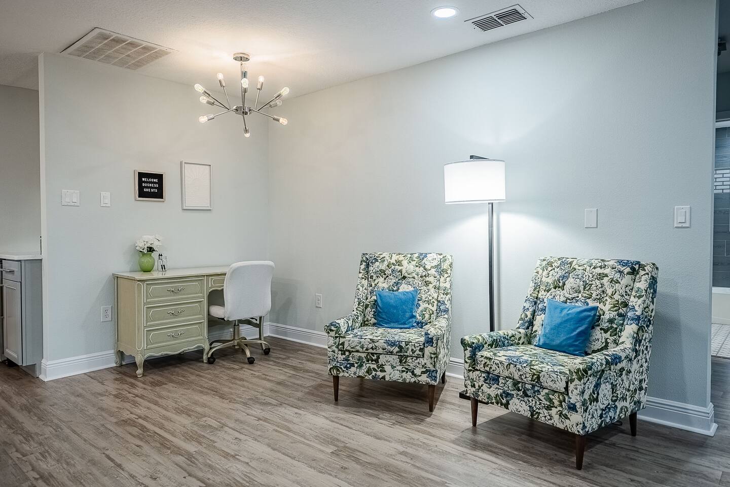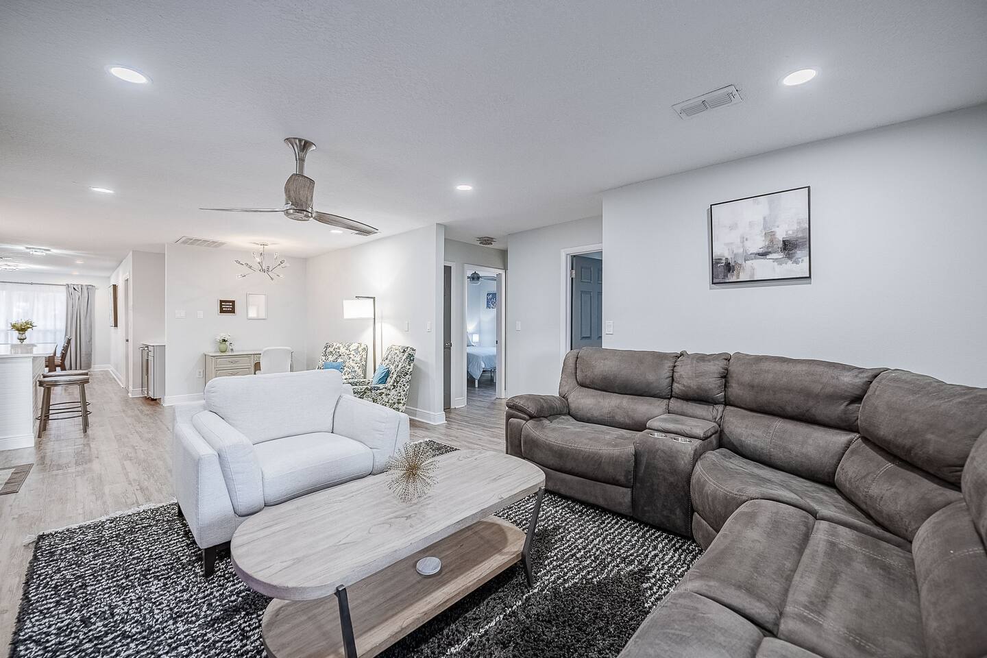 Welcome to The Duchess House– a serene and stylish getaway featuring all the comforts of home. Enjoy a modern kitchen, cozy living room with a faux fireplace, spa-like bathrooms, and cozy beds. Perfect for families or small groups seeking comfort, sophistication, and relaxation near Lakeland’s best attractions. Conveniently located close to Downtown.