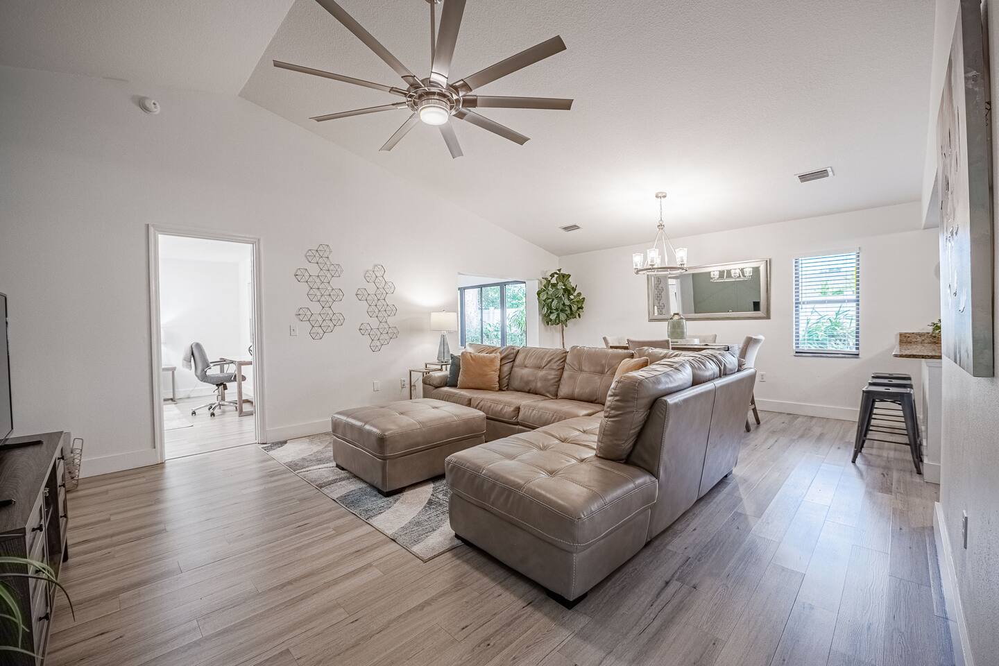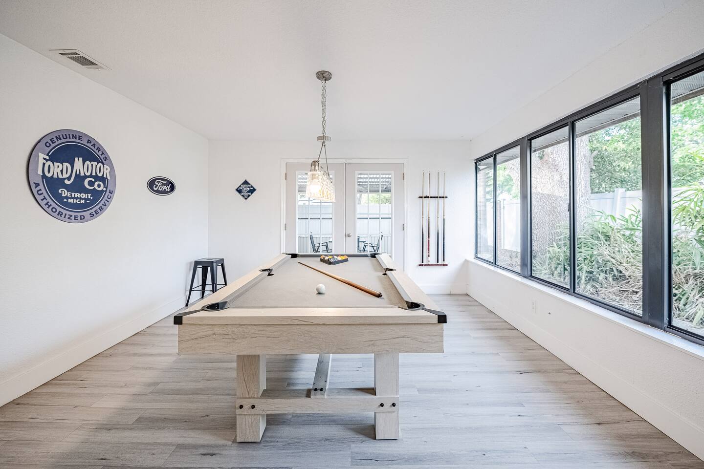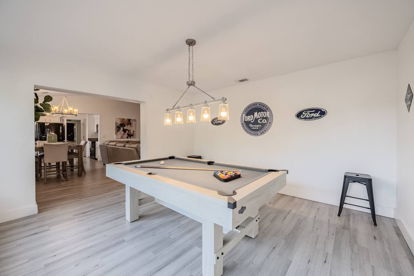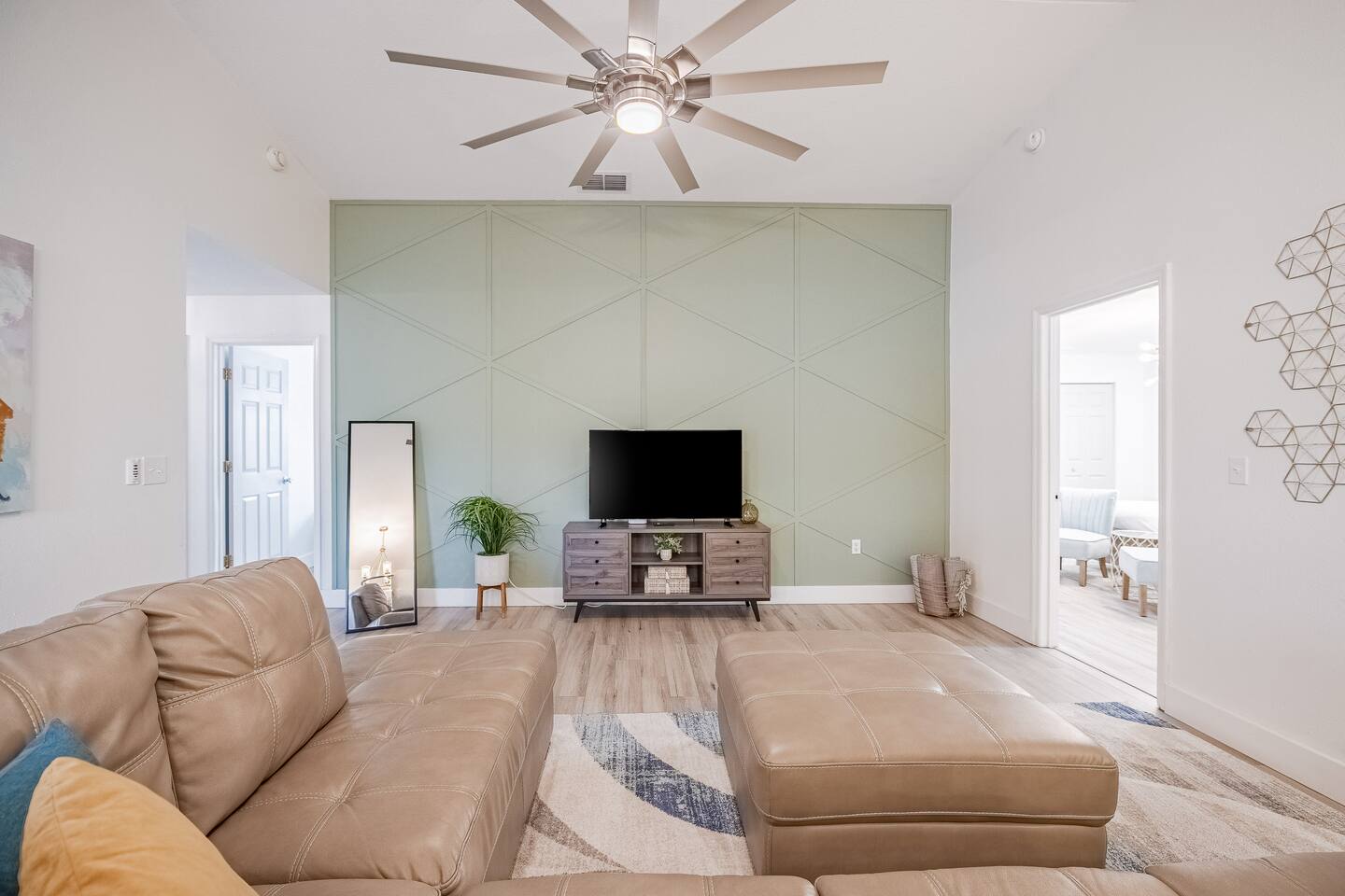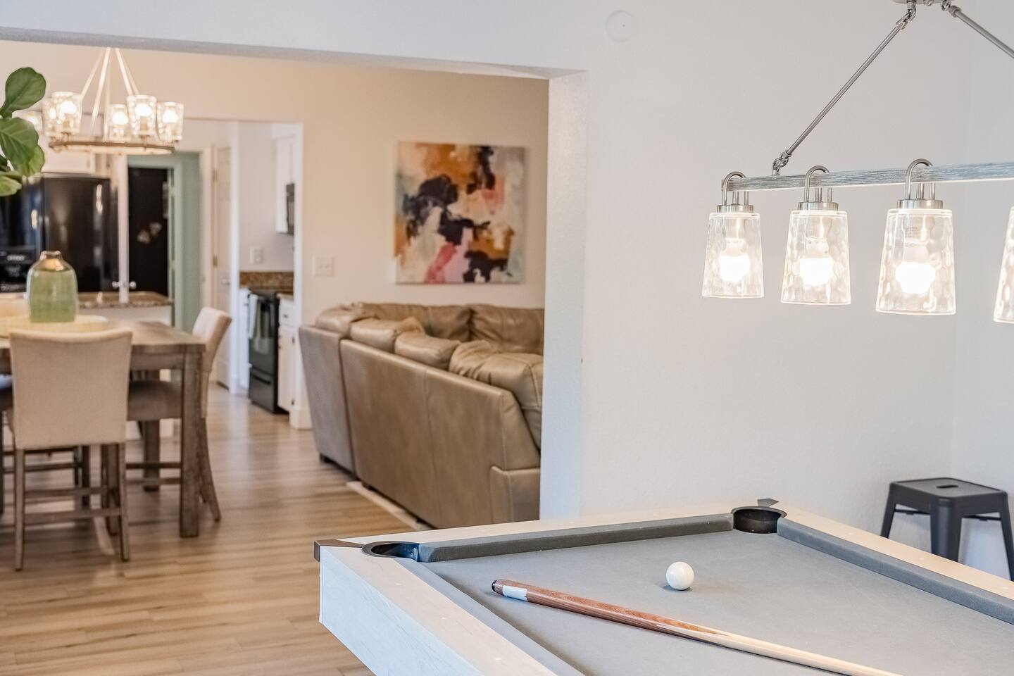 Welcome to Lakeland Luxe Lounge, a stylish 3-bedroom, 2-bath retreat designed for comfort and entertainment! Enjoy movie nights in the theatre room, challenge friends at the pool table, or relax with a fresh brew from the coffee bar. The fully stocked kitchen makes dining effortless, while the outdoor corn hole setup adds to the fun. Whether you're here to explore or unwind, this luxe getaway is the perfect choice!