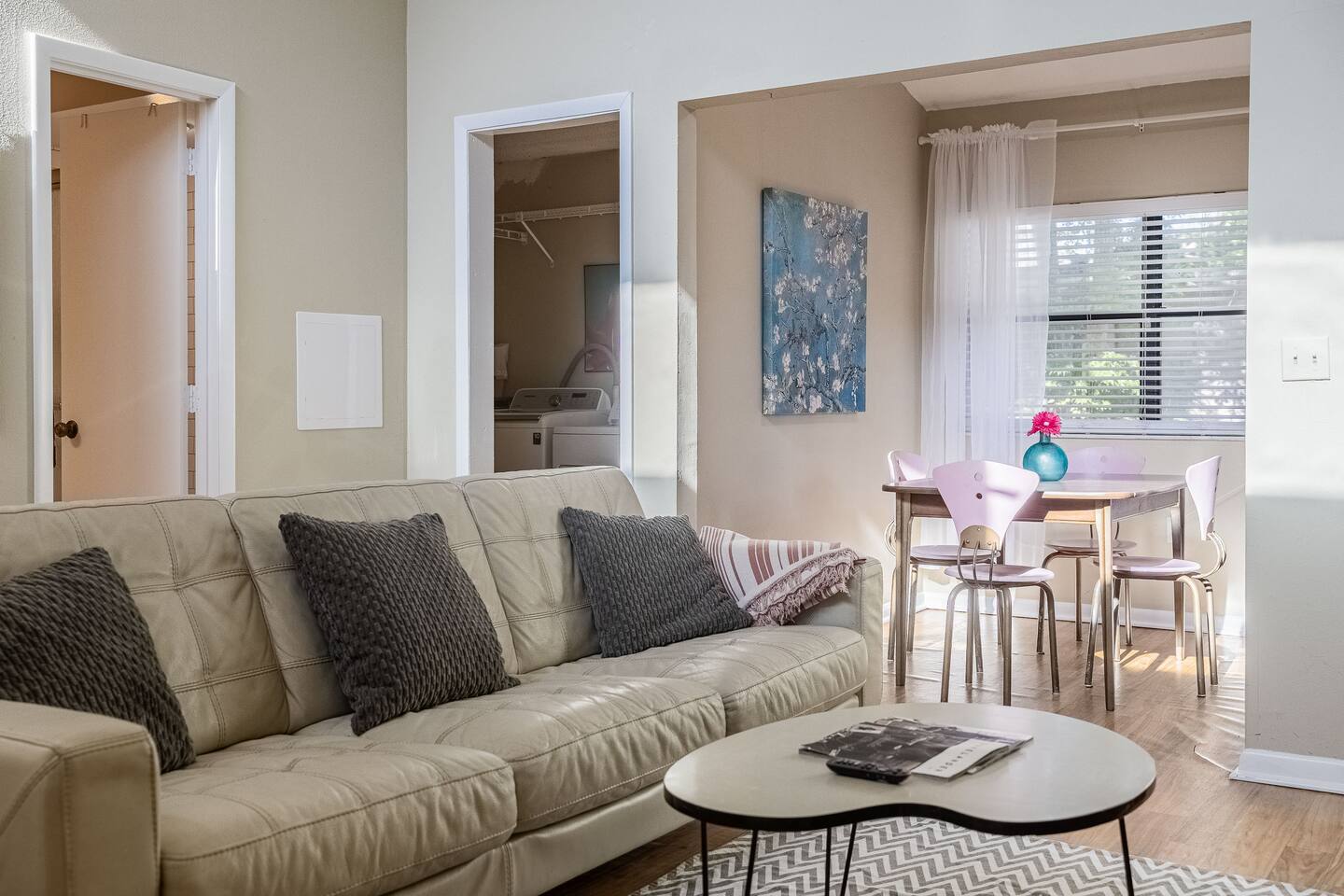 Guest access While you'll have access to almost the entirety of our delightful space, we do have one locked closet and a not accessible to guests. The downstairs unit is also not accessible to guests. √ Guest access: Keyless entry and self check in on your own time, which makes it super convenient to access at any time. √ Early check-in/late check-out: We'll do our best to grant special requests, but we can’t guarantee that we’ll be able to make every request happen. Contact your host to see if we can help accommodate any special request. √ Discounts: Want to extend your stay? We offer discounts for stays one week or longer. √ Pet Policy: Furry friends, we love you, but we cant have you here. Undisclosed pets including ESA (but not service dogs) will result in a $300 fine. √ Laundry: Traveling light or staying a while? We have a set of washers and dryers, and we provide laundry soap, too!