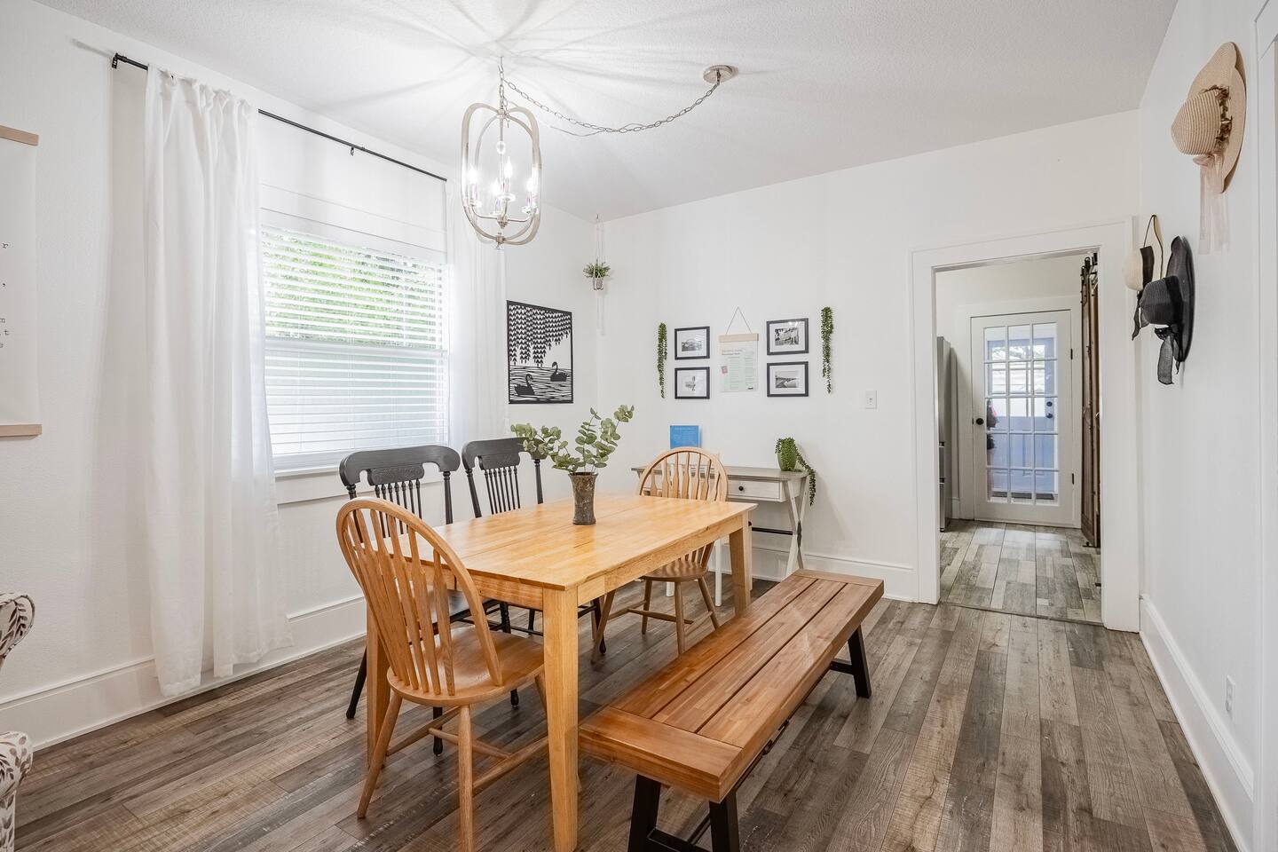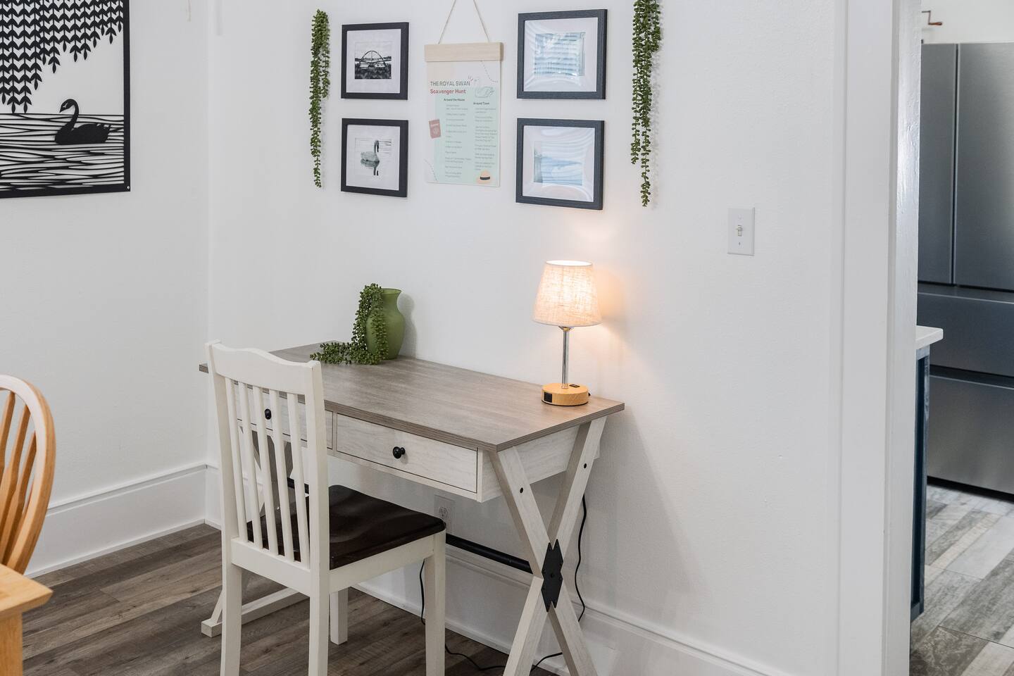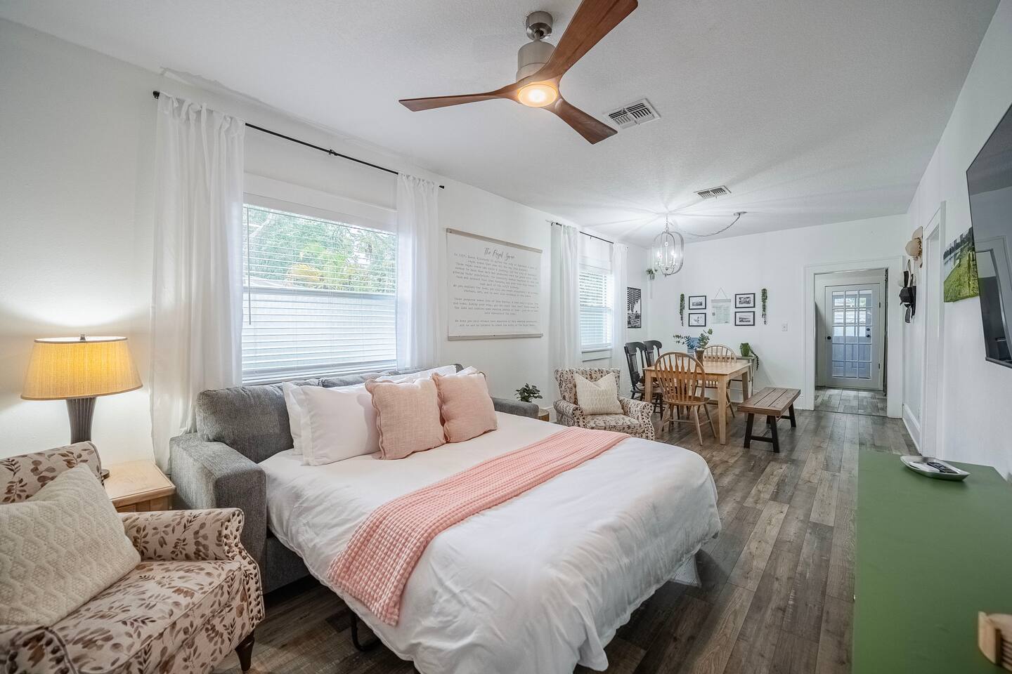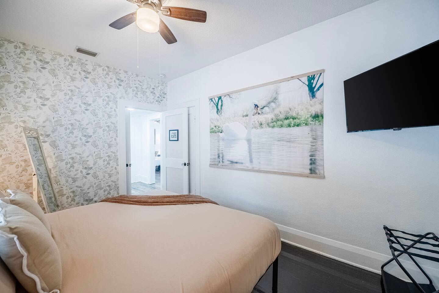 The Royal Swan is a gorgeously remodeled bungalow in Downtown Lakeland, sleeping up to 6 guests and pet friendly! The two-bedrooms feature modern decor with maximum comfort in mind! Spacious living area, dining for 6, work space, and a fully equipped kitchen. The fenced-in backyard or the classic front porch is perfect for relaxation. Centrally located, making it perfect for exploring all that Lakeland and the surrounding areas have to offer. Come be our Guest! We are excited to host you!